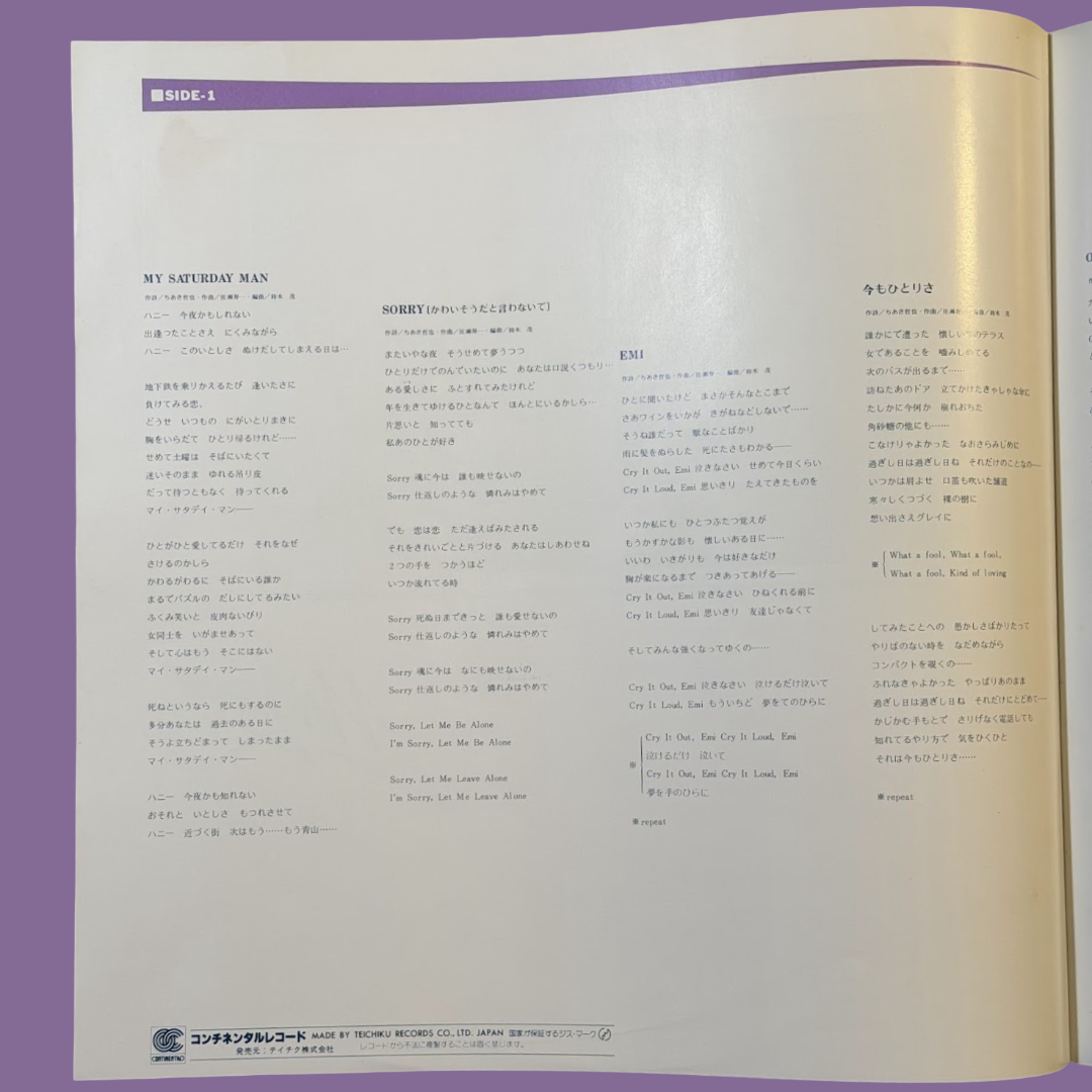 Mai Yamane (山根麻衣) – Sorry (Continental CI-1, 1981)